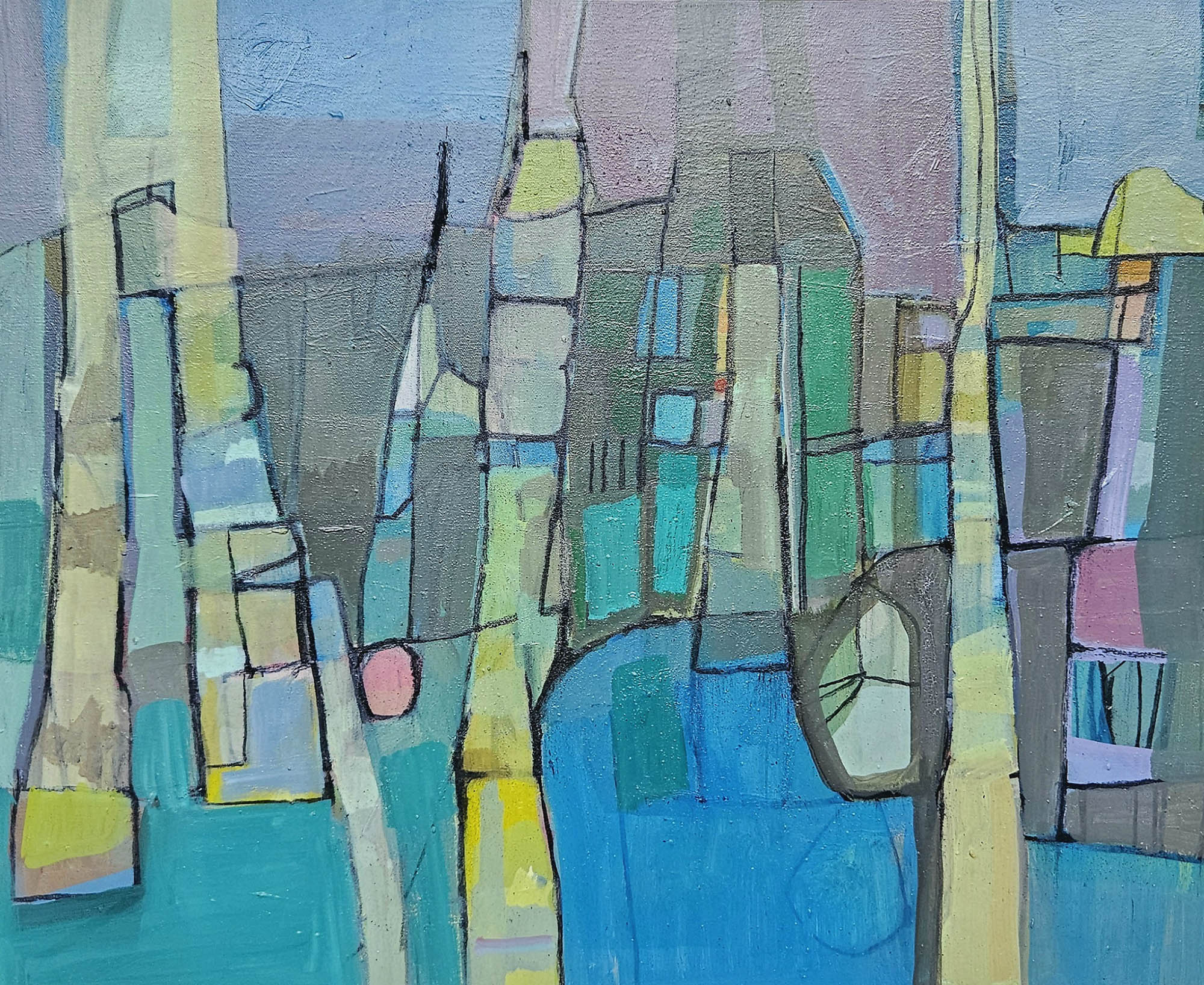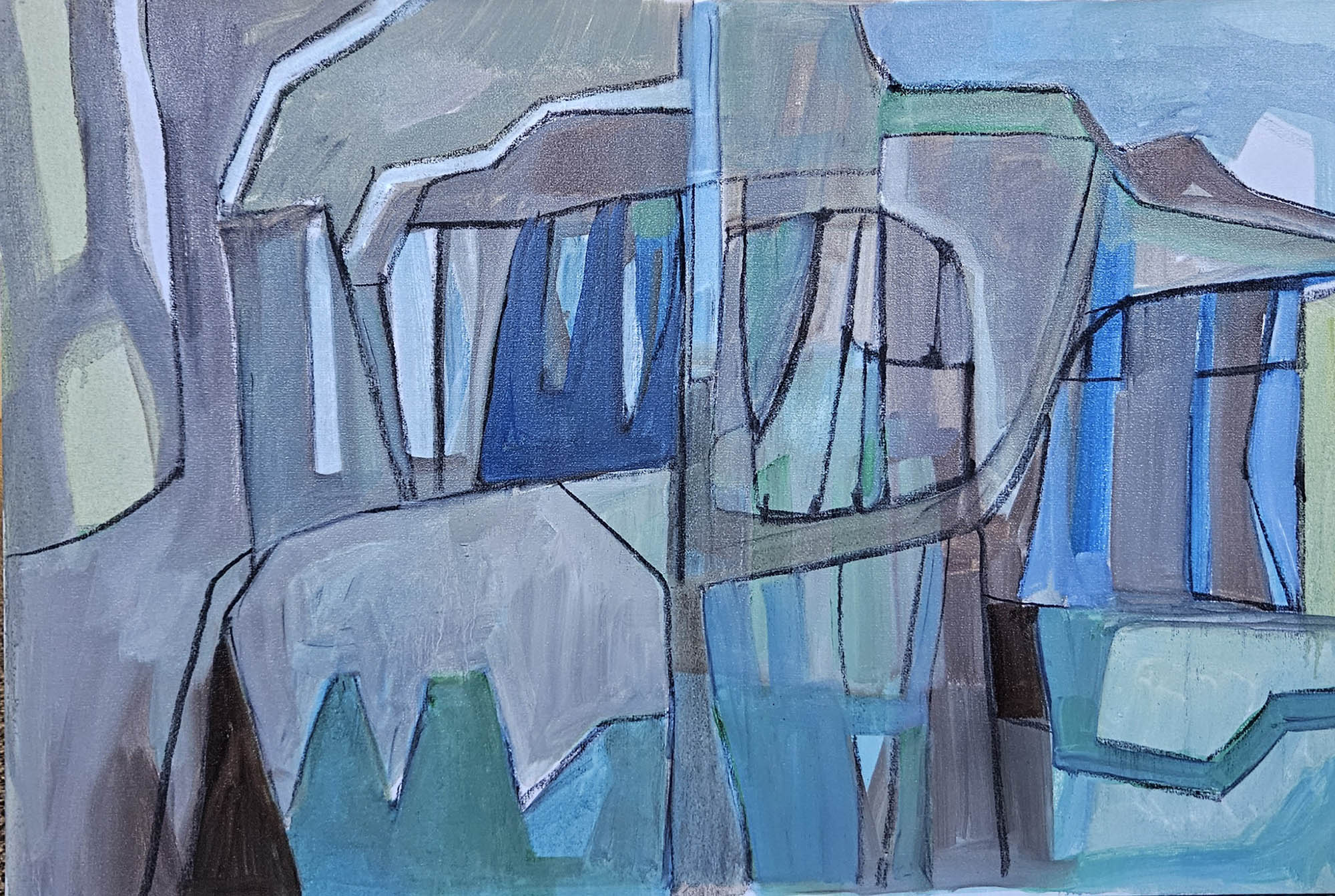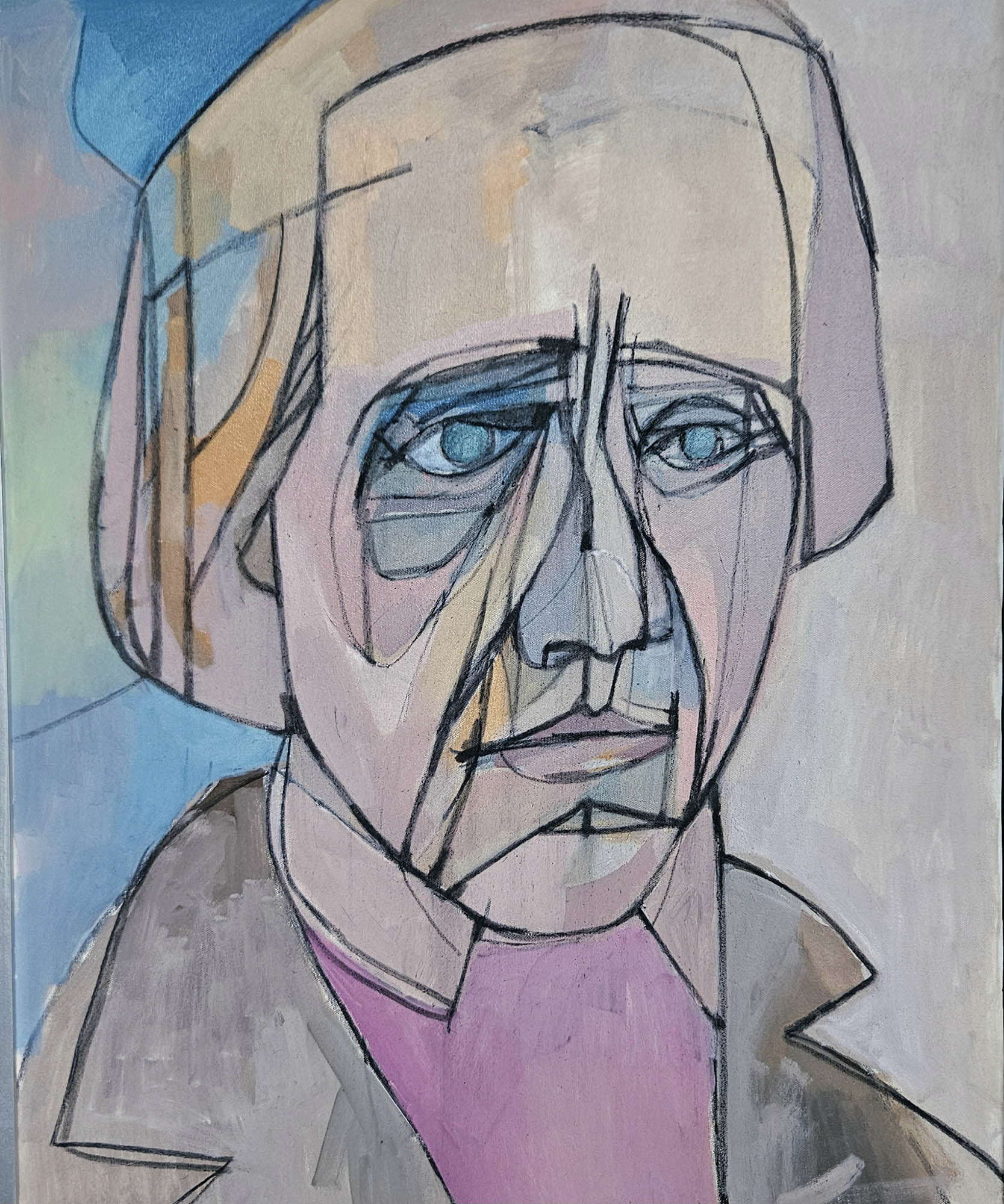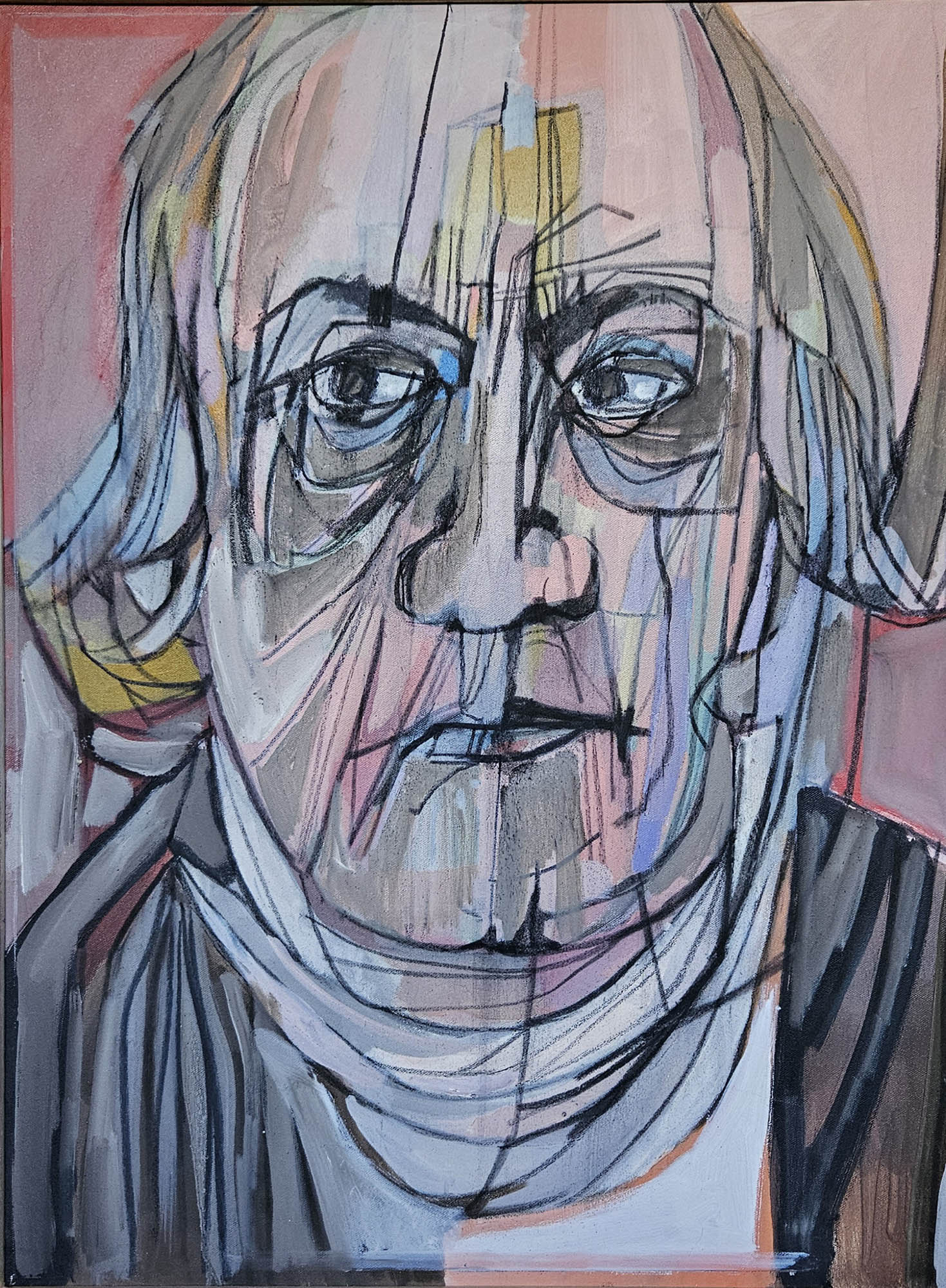 The Touchstones staff is delighted to present Framing the Future, our 2025 exhibition of works by musician, painter, and poet Elliott Zuckerman. These select works highlight Elliott’s decades-long experimentation with color, line, and shape in oil and charcoal. Within this exhibition, you will find two remarkably different self-portraits, each completed in 1994, that showcase the range of Elliott’s talent with palettes and form. In addition, Figuration #13, an abstract work and Grand Waterfall showcase a masterful approach in structure and movement.