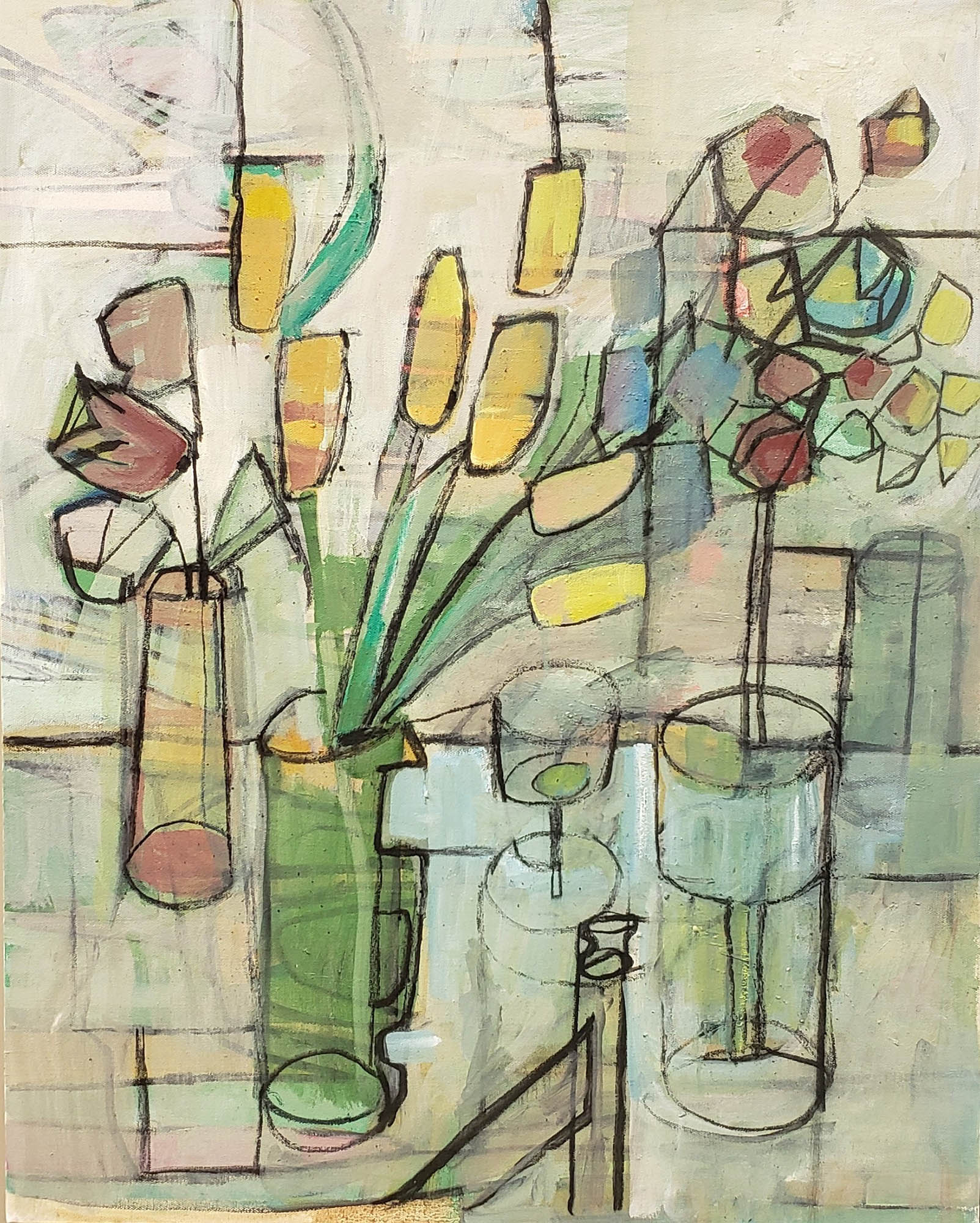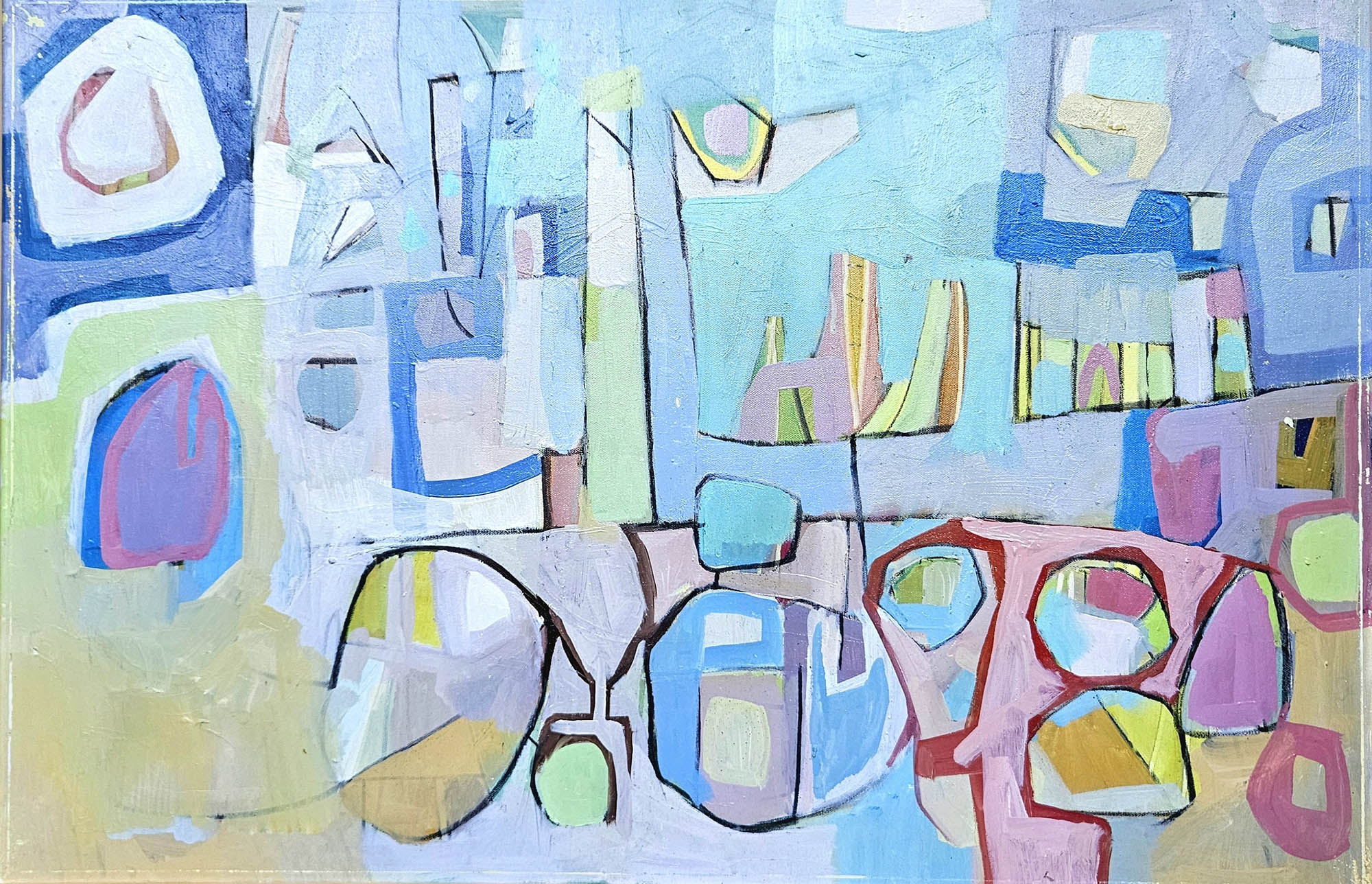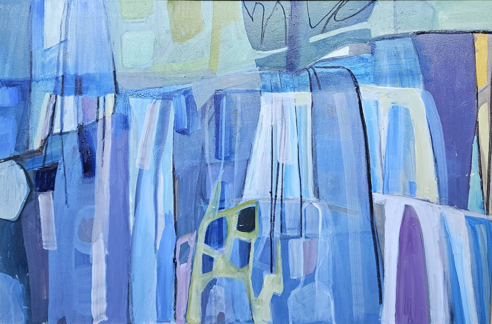 The Touchstones staff is delighted to present Framing the Future, our 2025 exhibition of works by musician, painter, and poet Elliott Zuckerman. These select works highlight Elliott’s decades-long experimentation with color, line, and shape in oil and charcoal. Within this exhibition, you will find two remarkably different self-portraits, each completed in 1994, that showcase the range of Elliott’s talent with palettes and form. In addition, Figuration #13, an abstract work and Grand Waterfall showcase a masterful approach in structure and movement.