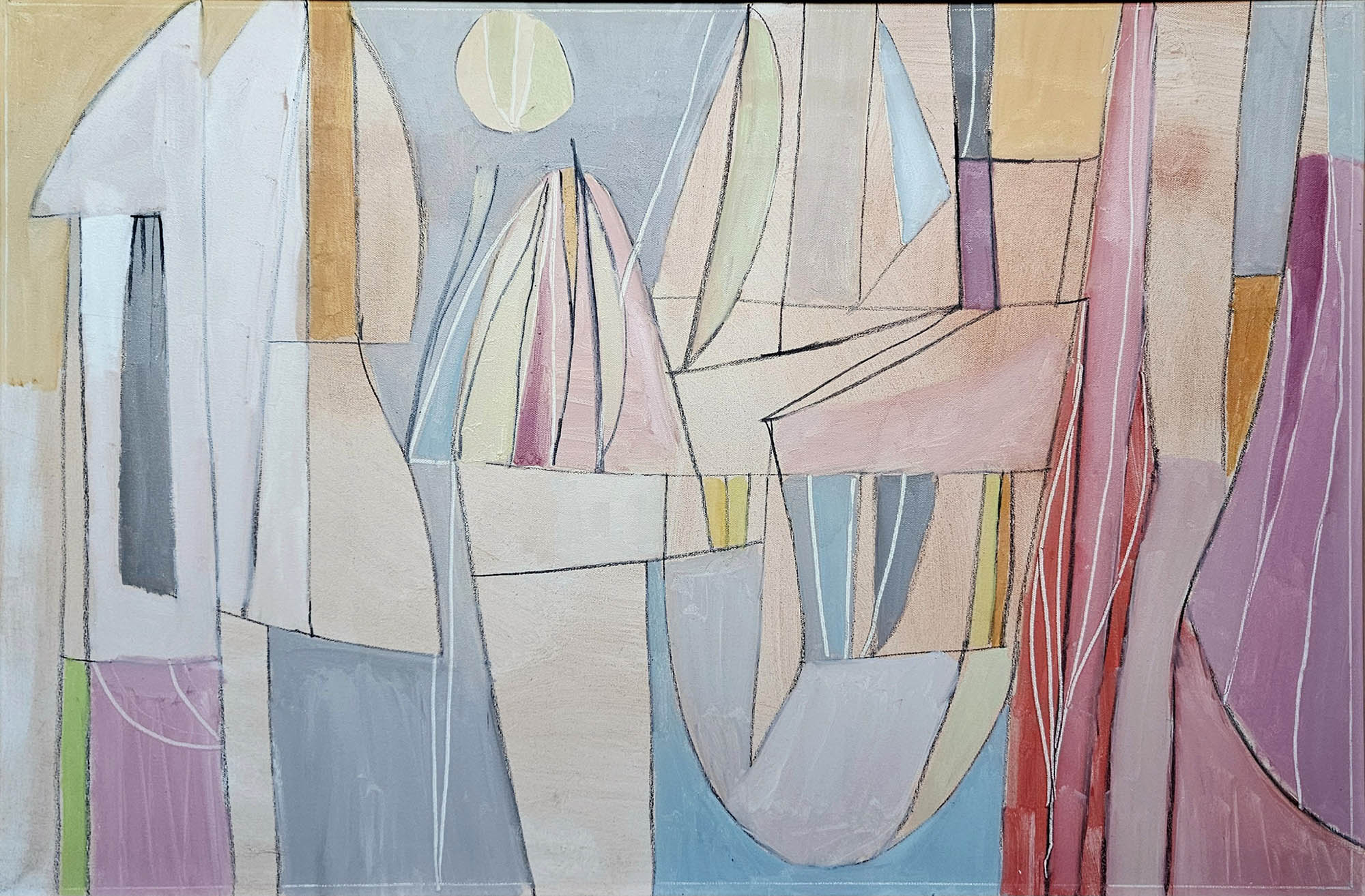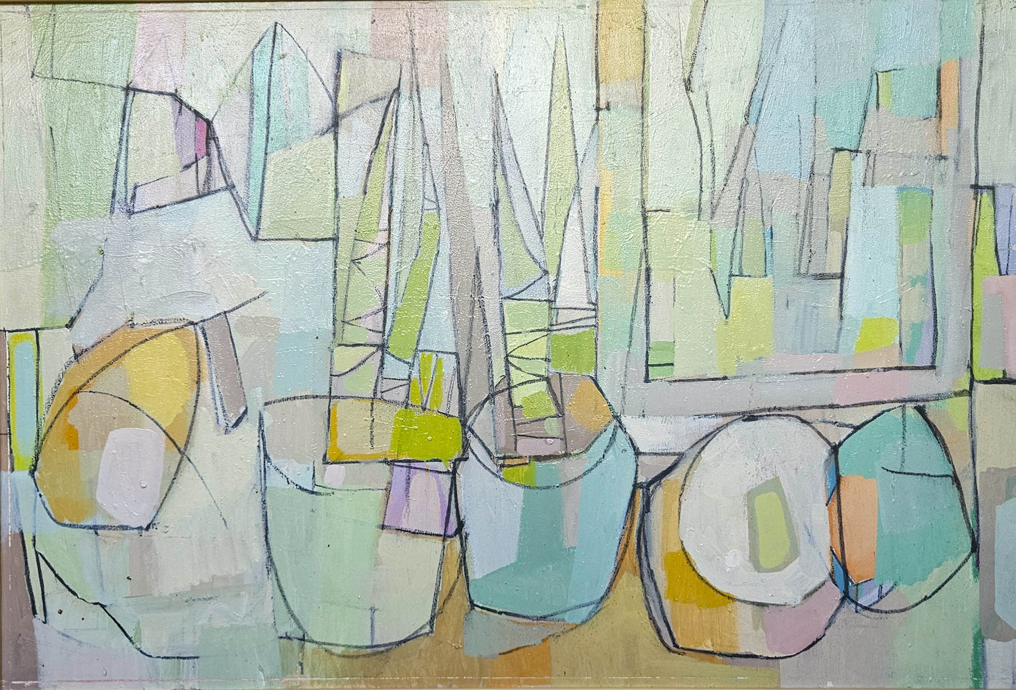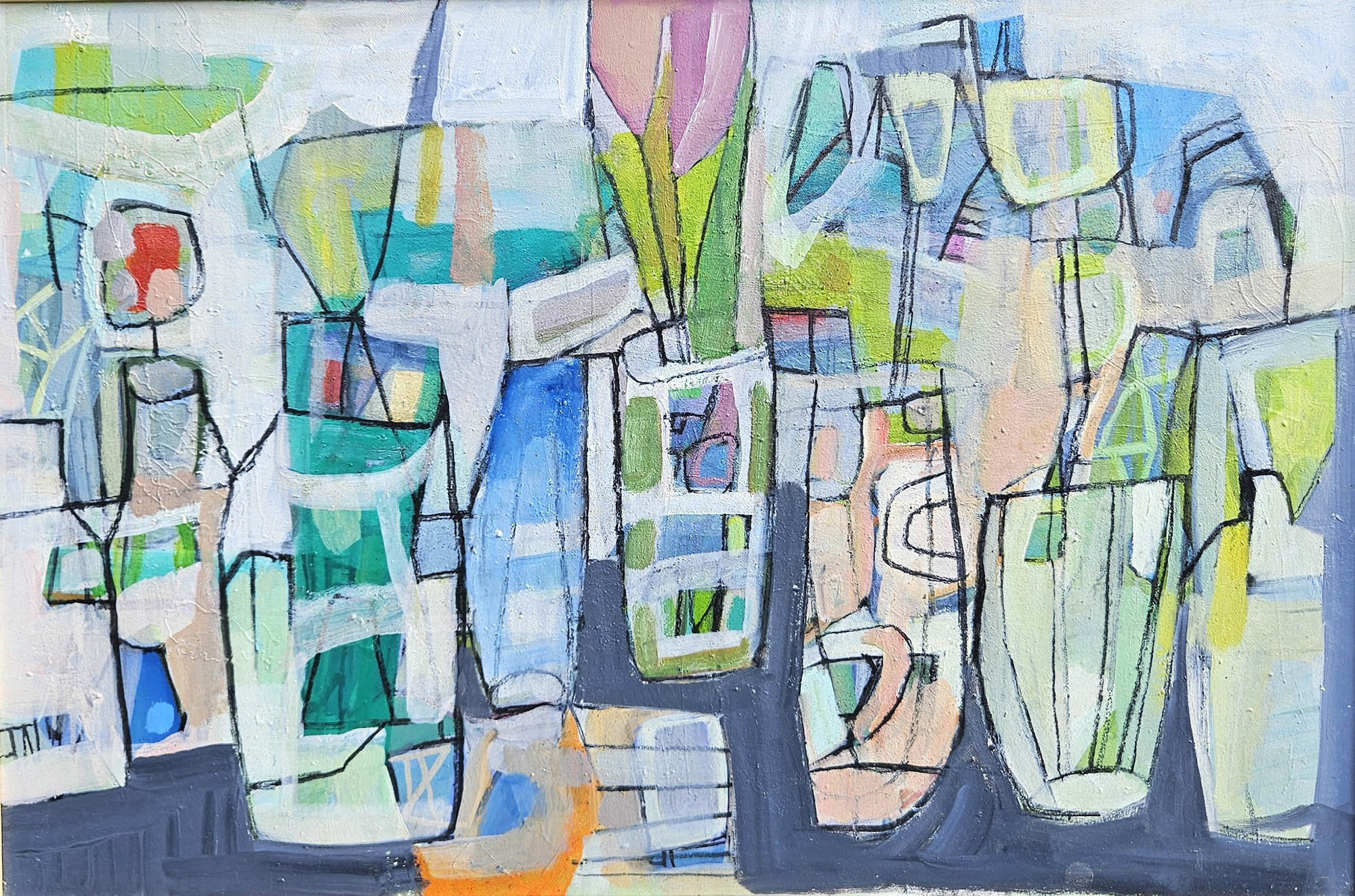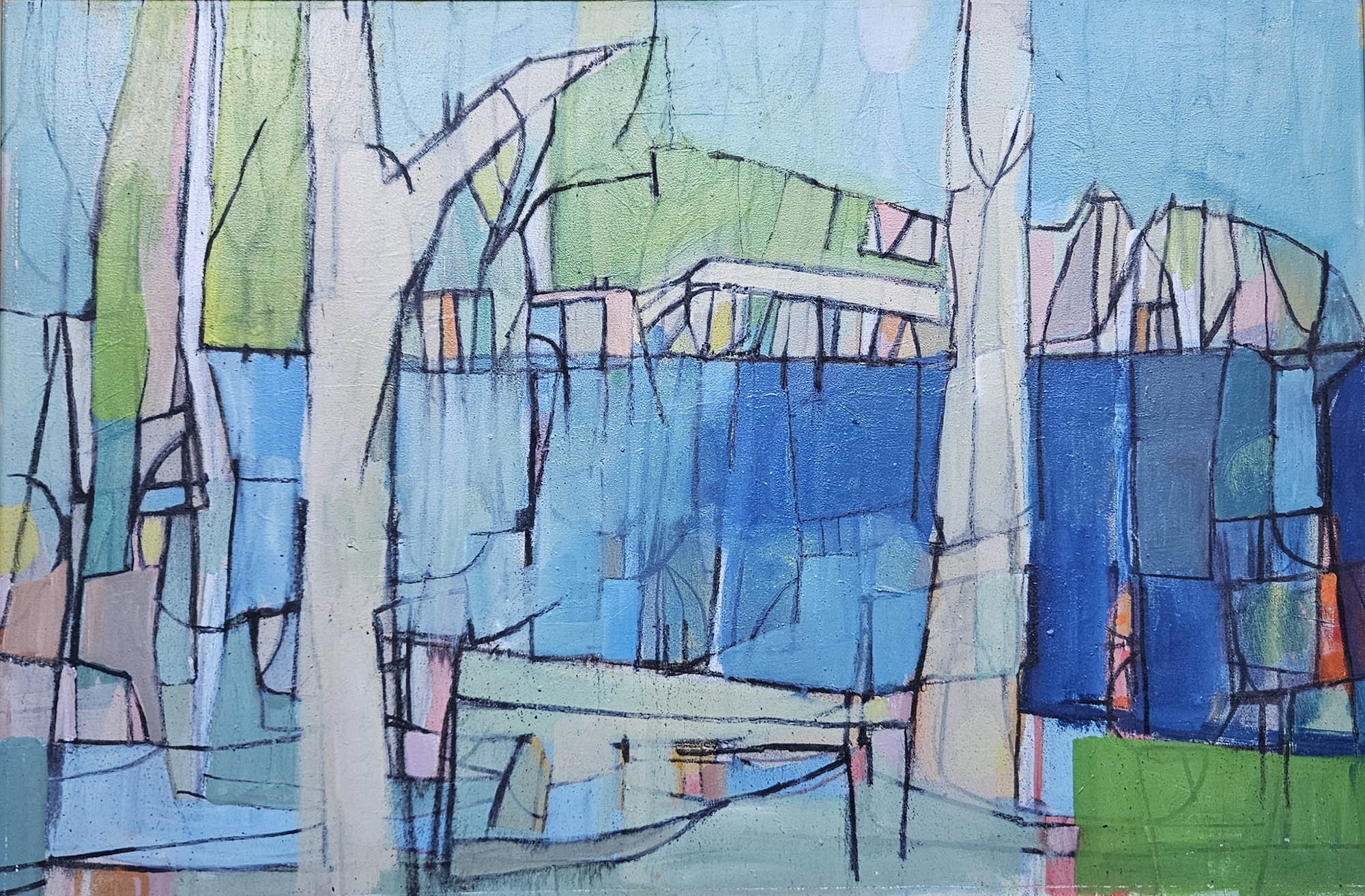 The Touchstones staff is delighted to present Framing the Future, our 2025 exhibition of works by musician, painter, and poet Elliott Zuckerman. These select works highlight Elliott’s decades-long experimentation with color, line, and shape in oil and charcoal. Within this exhibition, you will find two remarkably different self-portraits, each completed in 1994, that showcase the range of Elliott’s talent with palettes and form. In addition, Figuration #13, an abstract work and Grand Waterfall showcase a masterful approach in structure and movement.